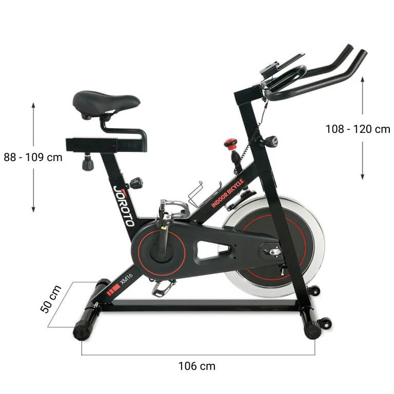 The frame of this JOROTO XM16 indoor bike is made with high-quality, heavy-duty steel. The sturdy construction allows suitability for people up to 280 pounds. With the solid chromed bi-direction flywheel, this exercise bike ensures you are stable and avoids jolting as you ride.