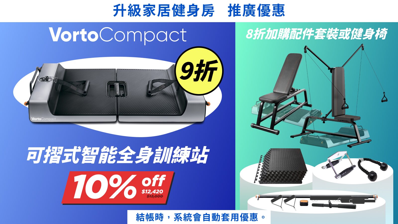 VortoCompact可摺式智能全身訓練站是一台體積小巧,功能滿載的居家健身好夥伴,一機享有100+訓練動作,佔地不足10呎,120kg大阻力,高承重量,擁有VortoCompact,就如同在家有一個訓練全身肌肉的高檔健身房。